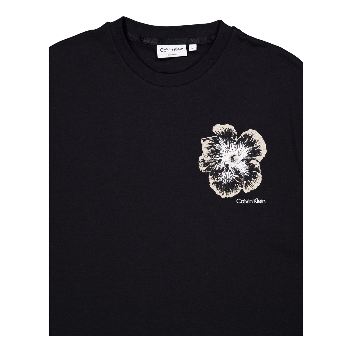 Broderad blomma på bröstet - en ren och snygg t -shirt från Calvin Klein