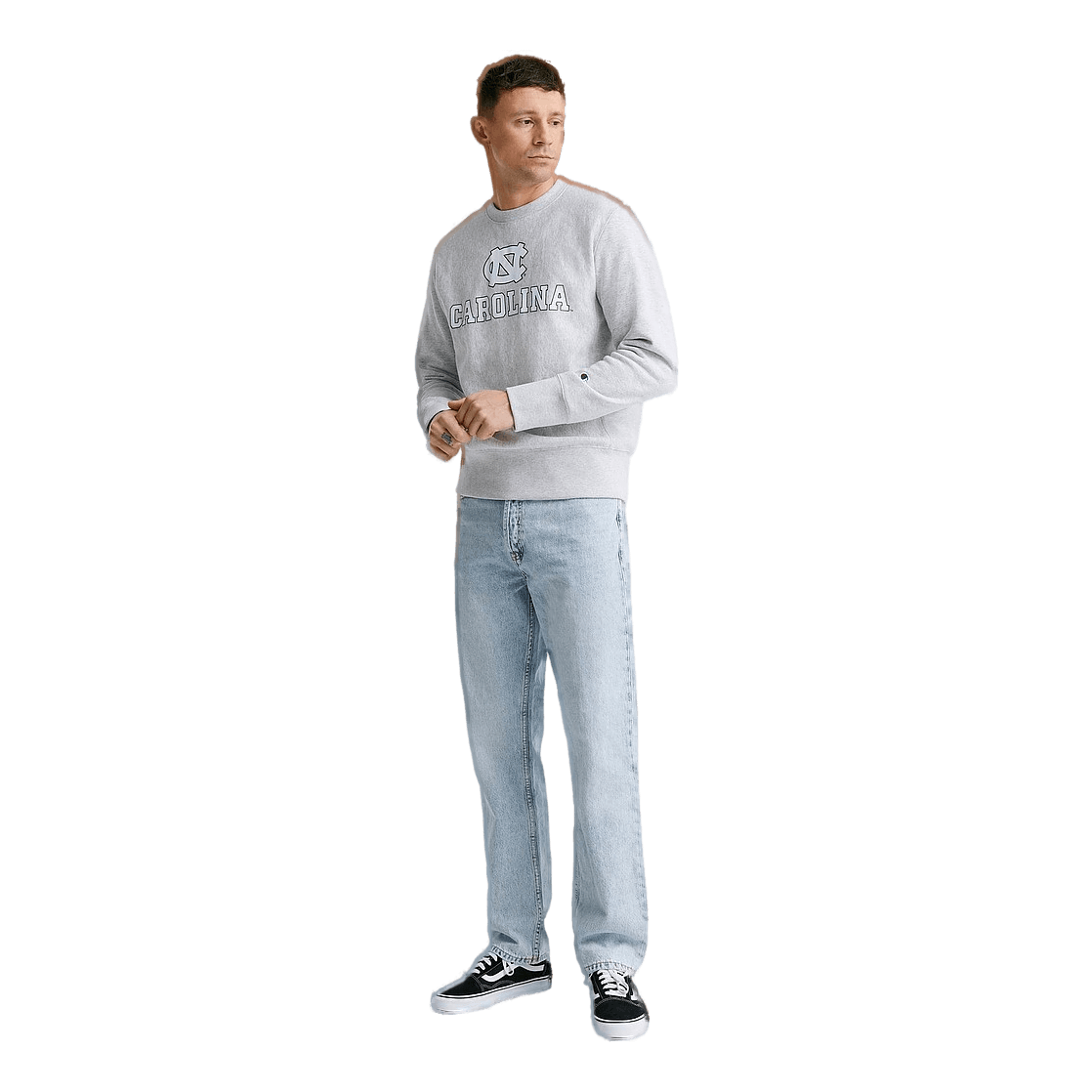 Sweatshirt från Champion som har ett tryck framtill. Sweatshirten är sydd i en mjuk sweatshirtkvalitet och ärmsluten, nederkanten och halsringningen har ribbade muddar runtom. Avslutet nedtill är rakt.