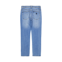A -90 -talets avslappnad är en mitthöjning, rak ben jean, tillverkad med en styv denim. Vi föreslår att du går upp en storlek