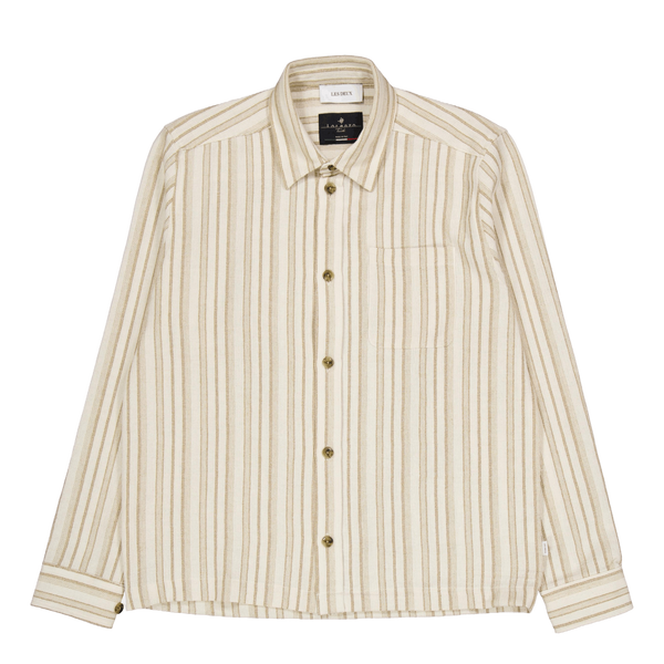 Shane Stripe Cotton Overshirt Ivory/lichen Green