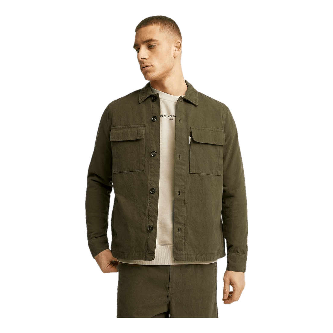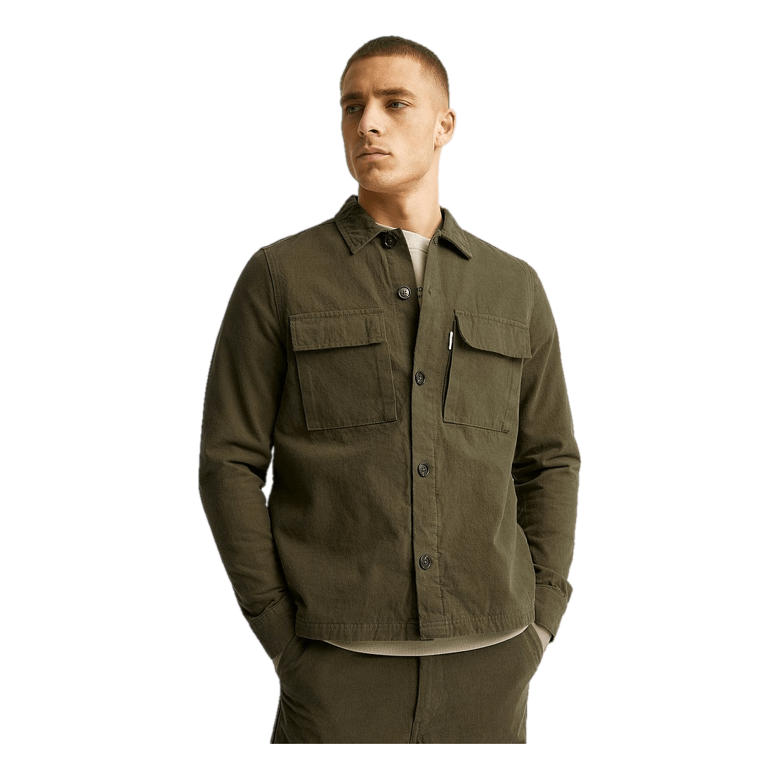 Overshirt Utility Overshirt från Studio Total. En overshirt som kan bäras både som tunnare jacka eller skjorta. Två fickor på bröstet och knäpps med knappar. Normal i passform.