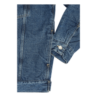 Relaxed fit trucker jacket with dropped shoulders. Made from a 100% cotton denim fabric and lined with pile for equal parts style and comfort.