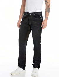 Gerade Fit -Jeans mit regelmäßiger Taille und gerade Bein für einen Komfortgeeignungen. Das Kleidungsstück besteht aus 11 Unzen -Indigo -Superstet -Baumwoll -Denim mit einem dunklen Waschenton.