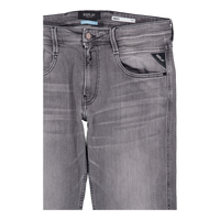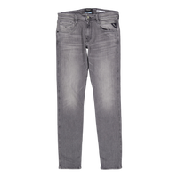 Slim-fit jeans with a regular rise and a slim leg that tapers toward the hem. This piece comes in sulphur black stretch denim made from 10.5-oz organic cotton with a mid-wash, black weft. This five-pocket style features an eco stone wash with synthetic pumice stone, a wiser wash and a laser wash to accentuate the distressed look. The coin pocket and back pockets have our iconic gull-wing stitching, one of which bears R embroidery, while one of the front pockets features a small branded insert. Zip and button fastening. This garment comes in organic cotton with an eco wash, attesting to Replay's commitment to sustainable fashion.