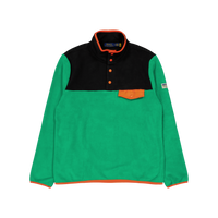 This color-blocked pullover combines ultrasoft brushed fleece with contrasting woven details for an outdoors-inspired look.