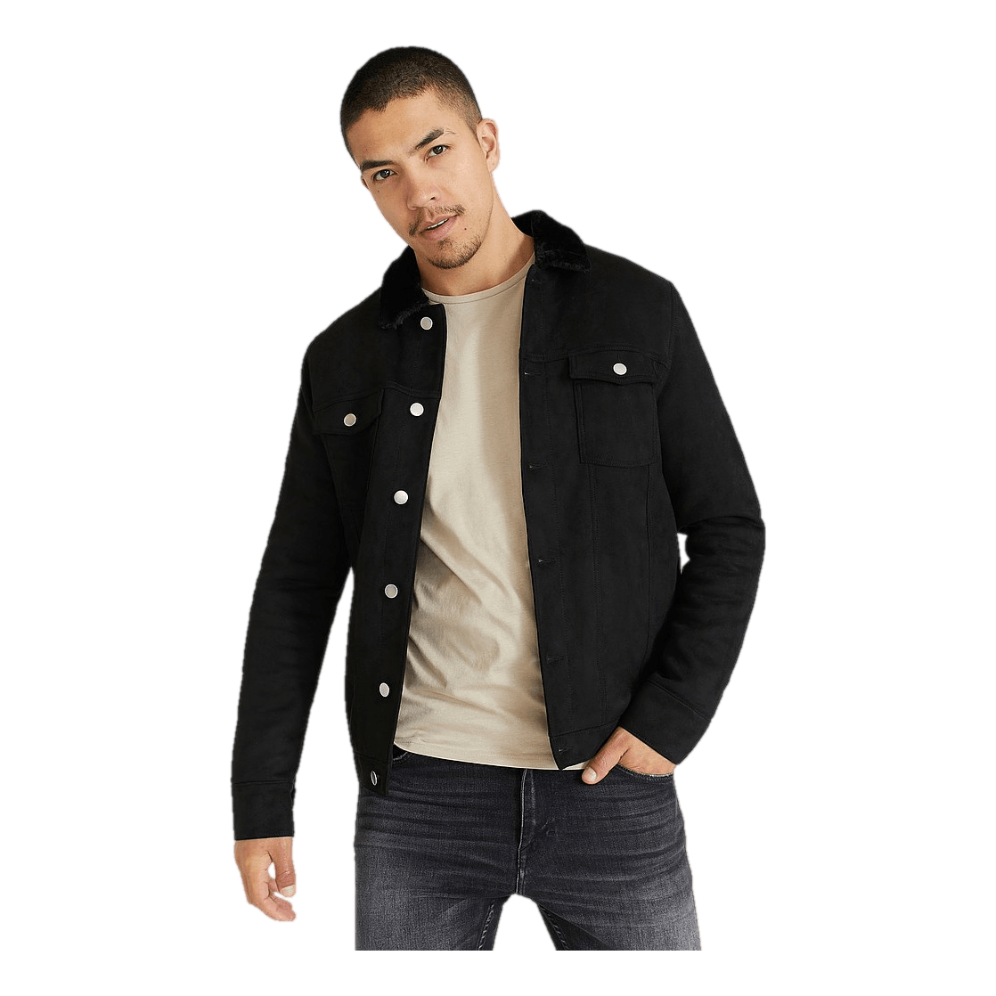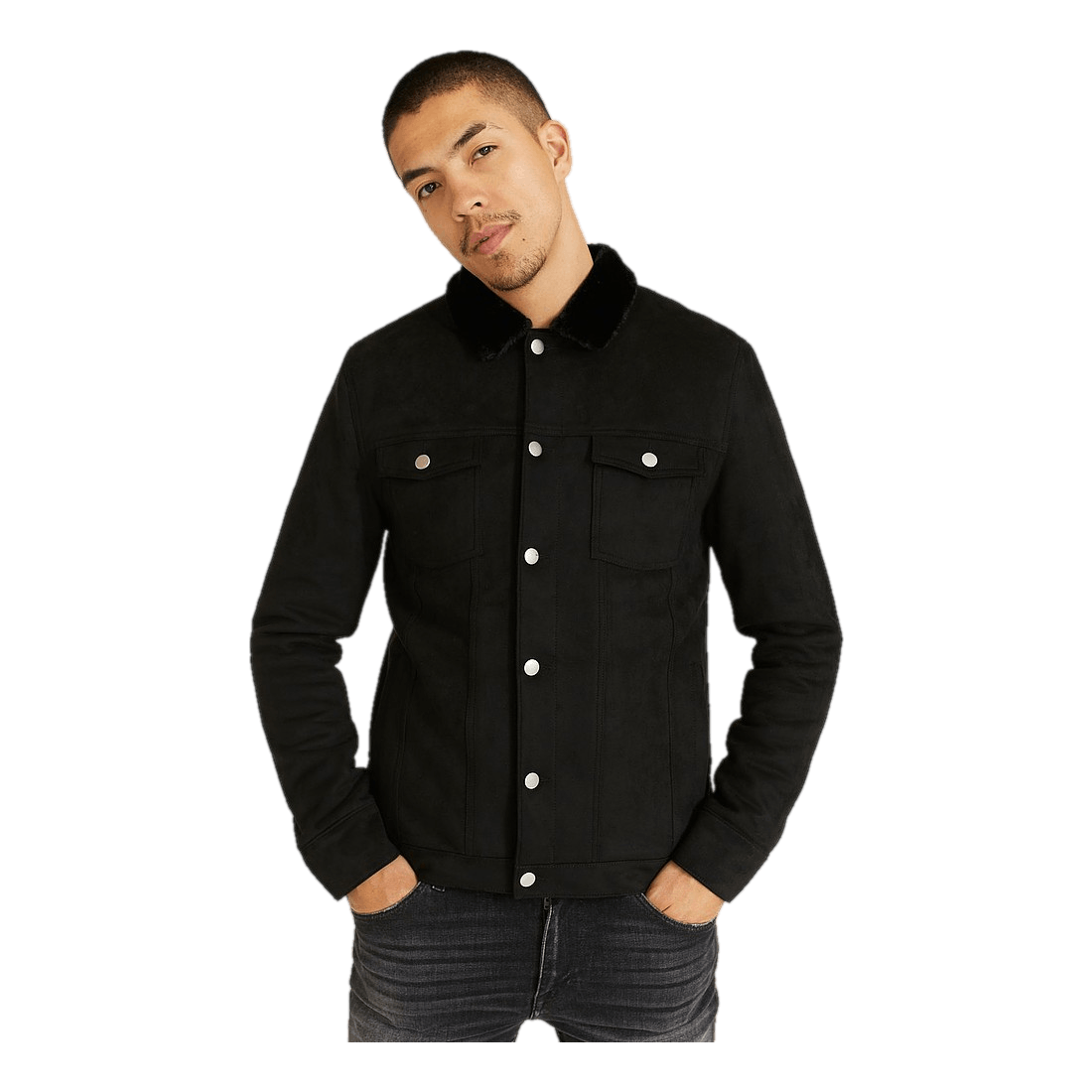 Jakke Trucker Jacket Fake Suede Fur fra Studio Total. Jakke i truckermodell med normal passform. Krage og innsiden av jakken er fôret med fuskepels. To brystlommer samt to sidelommer.