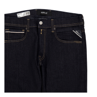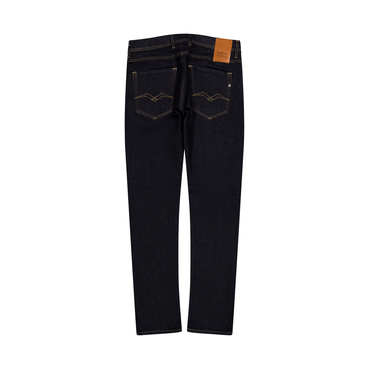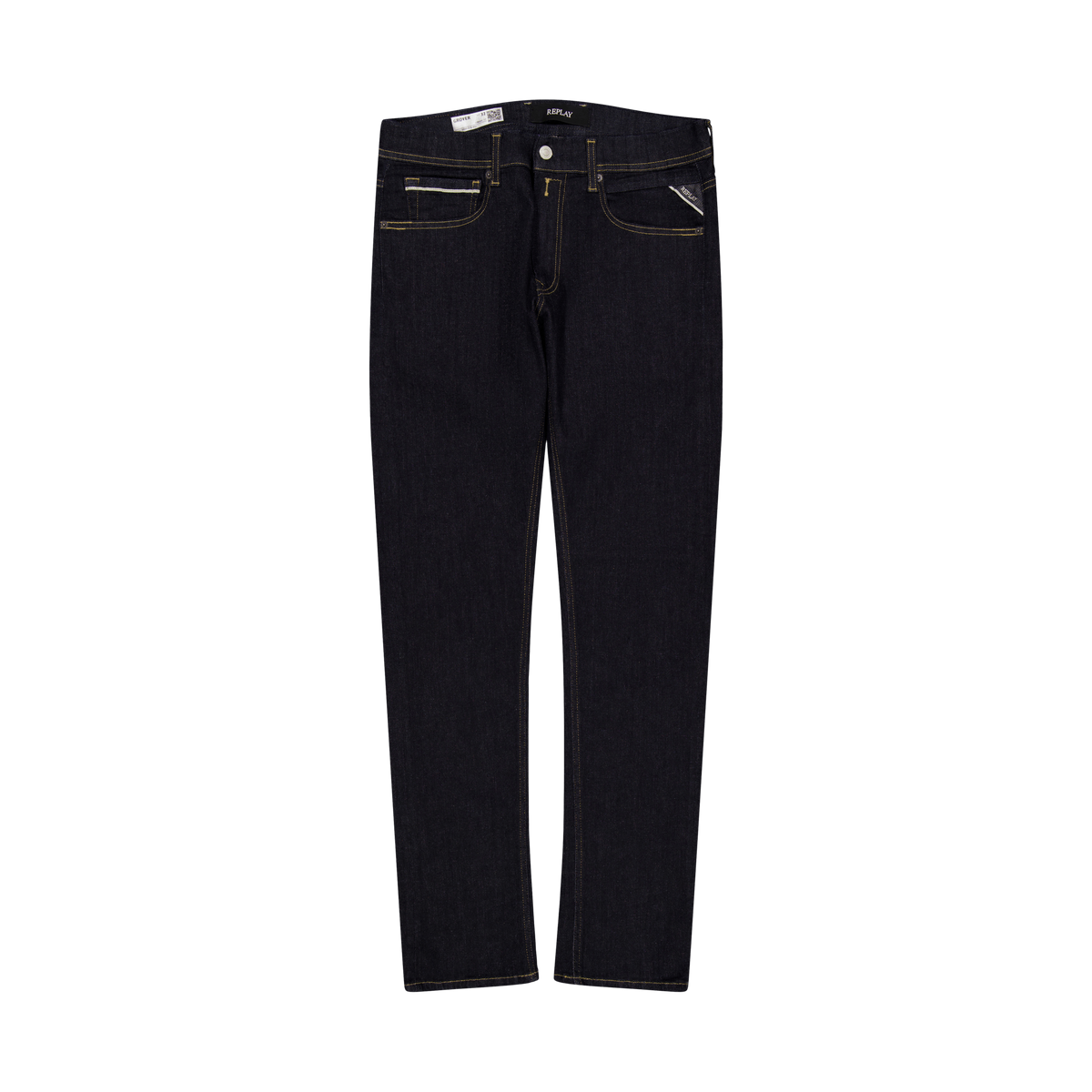 Straight fit jeans with regular waist and straight leg for a comfort fit. The garment is made of 11 oz indigo stretch cotton denim with a dark wash tone.