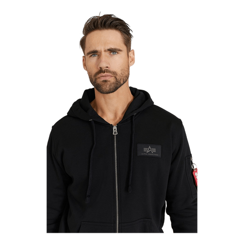 Hoodie från Alpha Industries som stängs med hjälp av en dragkedja. Hoodien har en luva med en justerbar dragsko och två magfickor. Ärmsluten samt nederkanten har ribbade muddar runtom och på ena ärmen sitter en ficka. Avslutet är rakt och insidan har en mjuk borstad yta.